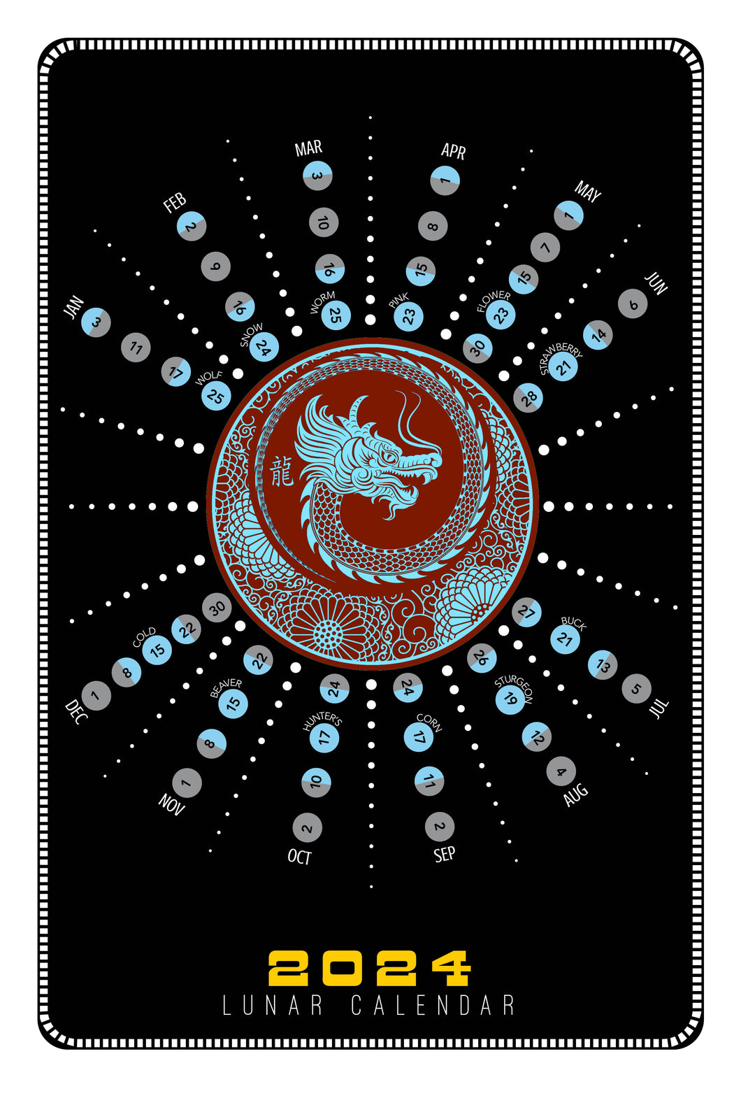 2024 Chinese Dragon Lunar Calendar 2022 – The Lunar New Year is a holiday that originated in China over 4,000 years ago but is now celebrated globally. To mirror the 15 days of festivities, here are 15 gifts that can help usher in the Lunar . The dragon stamp sheet features artwork by Tiger Pan of China, who also illustrated the Lunar Calendar series for 2018 and for the first two sheets of the new Chinese zodiac cycle since 2022. The .