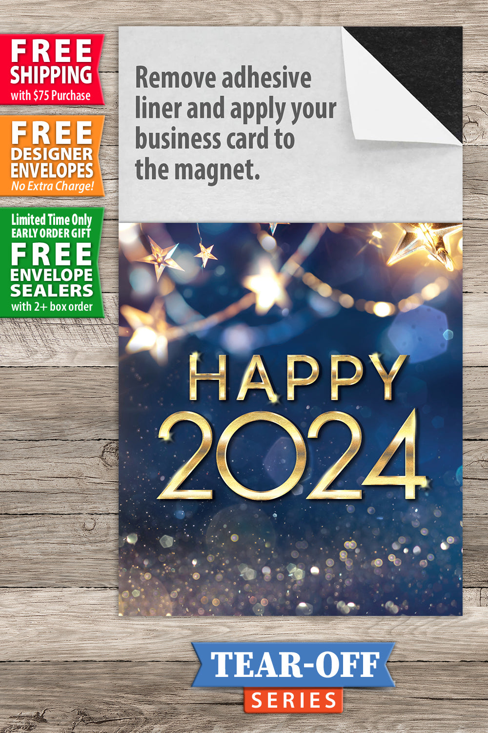 Happy New Year 2024 Tear Off Calendar with Business Card Mag